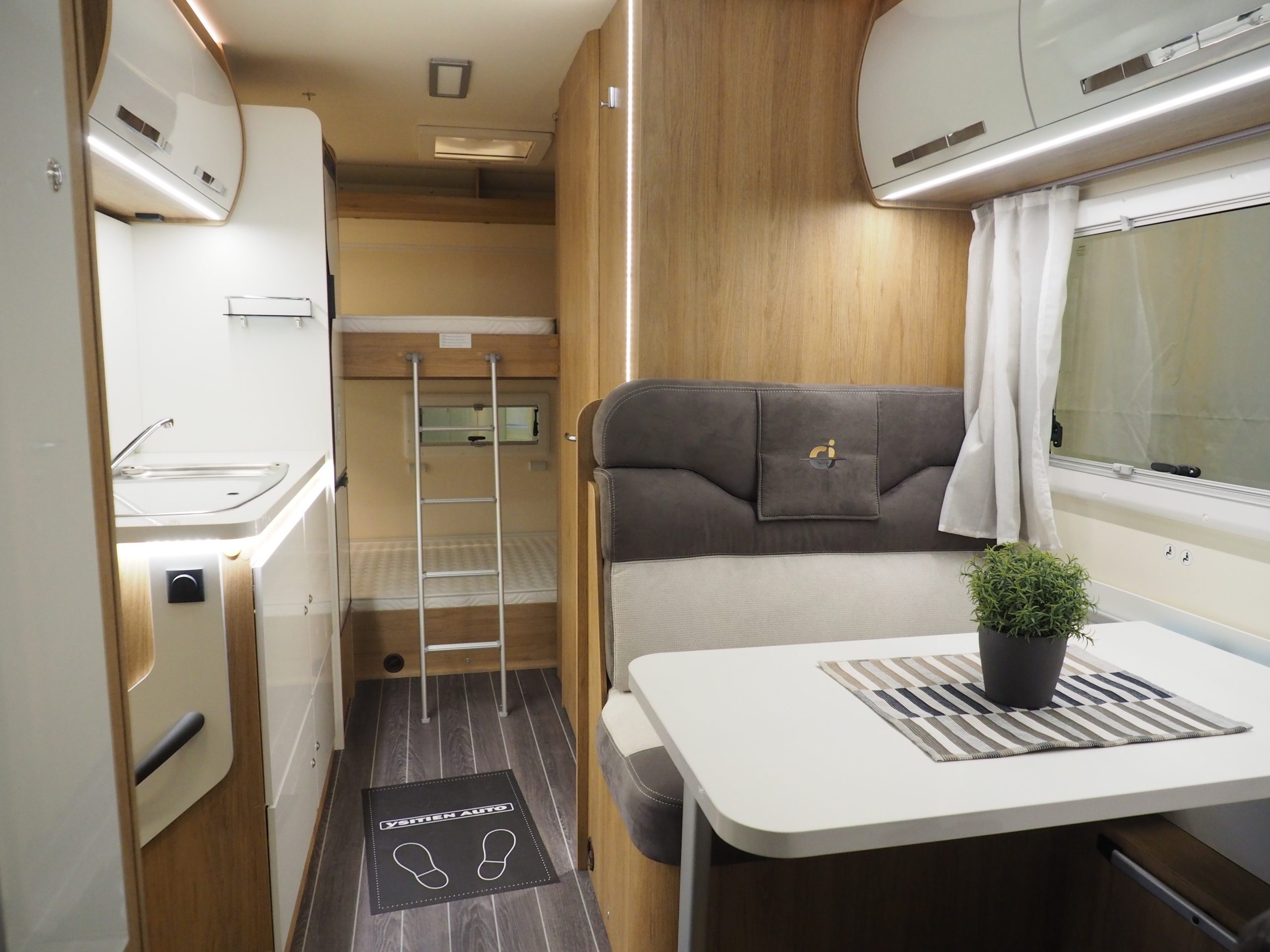 Vuokrataan upea Ford Ci Elliot 79M hyvillä varusteilla: aurinkopaneeli, peruutuskamera, markiisi, ilmastointi ajotilassa ja iso takatalli. Auto on rekisteröity 5:lle ja vuodepaikkoja on 8:lle aikuiselle. Kuljettajalla ja apukuskilla on kolme piste vyöt, kuin myös kahdessa penkissä takana, jotka matkustavat kasvot menosuuntaan. Selkämenosuuntaan olevat kaksi penkkiä ovat kaksipistevöillä. Autossa on kerrosparisängyt, alkovissa parivuode ja keittiöryhmästä saa pienen parivuoteen. Ci Elliotin korkealaatuiset vuoteet takaavat hyvät yöunet! Matka taittuu mukavasti, sillä autossa on vakionopeudensäädin ja sinua kuljettaa tehokas 2.0 TDCI 170HV moottori. Tässä autossa on tyylikkäät puuvapaat materiaalit ja tilaa on runsaasti.
