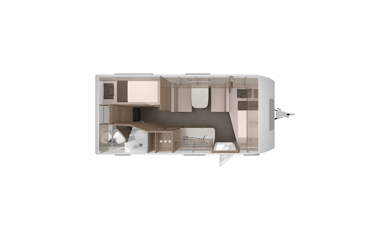 Knaus asuntovaunu on käytännöllinen vaikkapa lapsiperheelle, makuupaikkoja on kuudelle. Vaunussa on kerrossänky, parivuode ja ruokailuryhmästä saa vuoteen kahdelle. Vaunussa on kitkavetopää, kasettiverhot ikkunoissa, 45 L kiinteä tuorevesisäiliö, 12V ilmankierrätysjärjestelmä ja Trumatic ilmakeskuslämmitys.