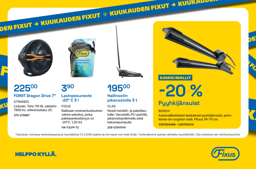 Olemme osa Fixus autokorjaamo- ja varaosaliikeketjua, joka on Suomen kattavin autovaraosien, -lisävarusteiden sekä huolto- ja korjauspalveluiden jakeluketju.